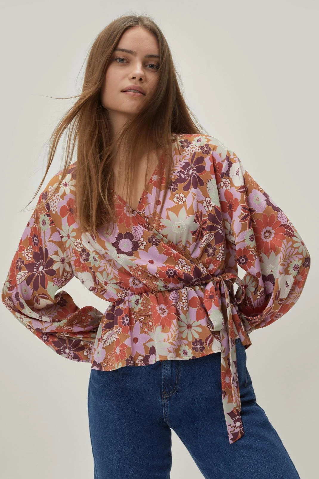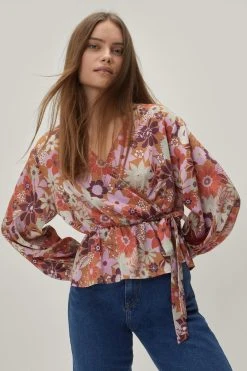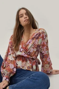Top priority. Feel feminine when you slip into our wrap top, made in a cute floral print, with a comfortable and ultra flattering wrap silhouette, a V neckline, and tie waist detailing. Pairs perfectly with jeans and chunky boots for an elevated look that will take you seamlessly from lunch dates to happy hour catch ups.