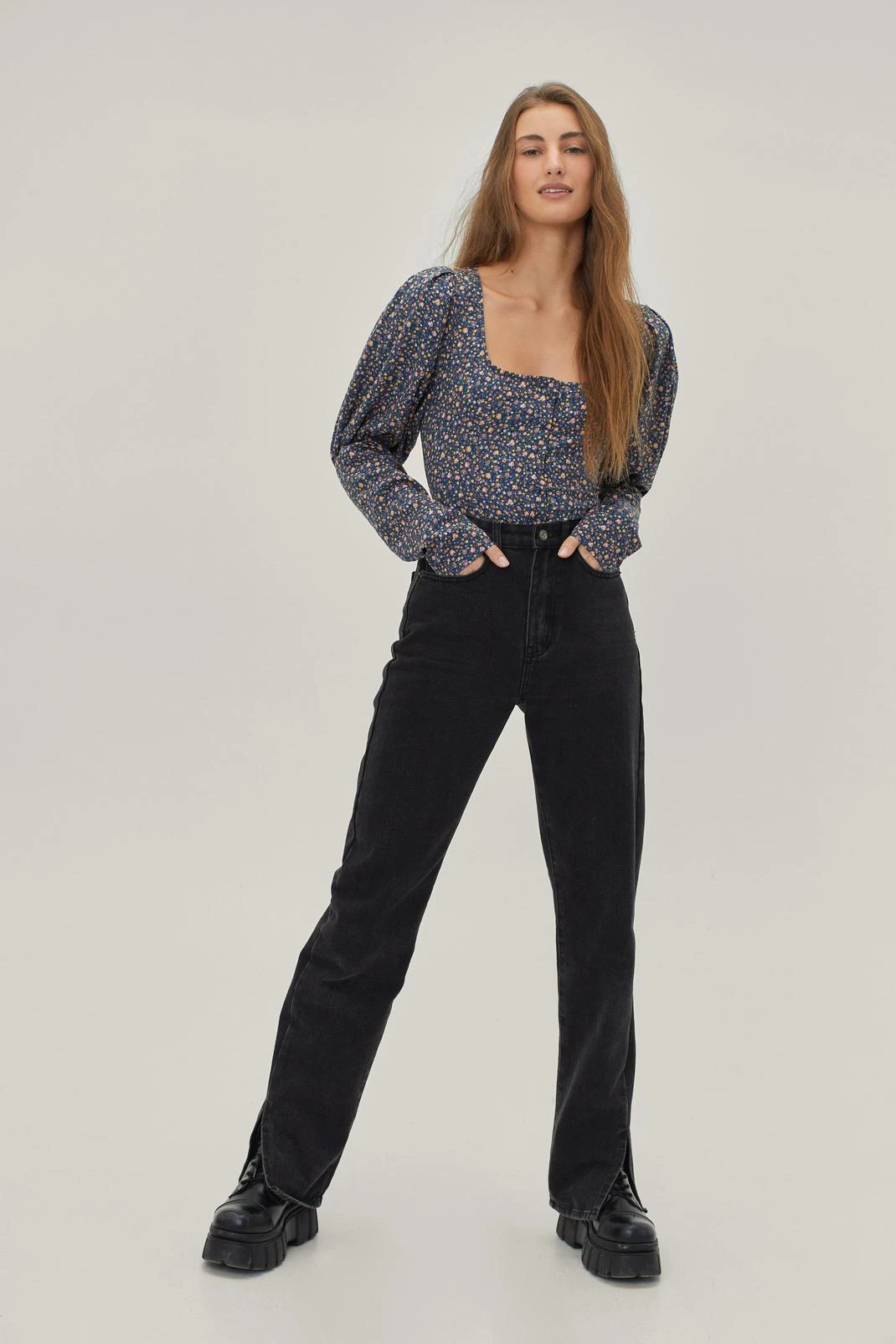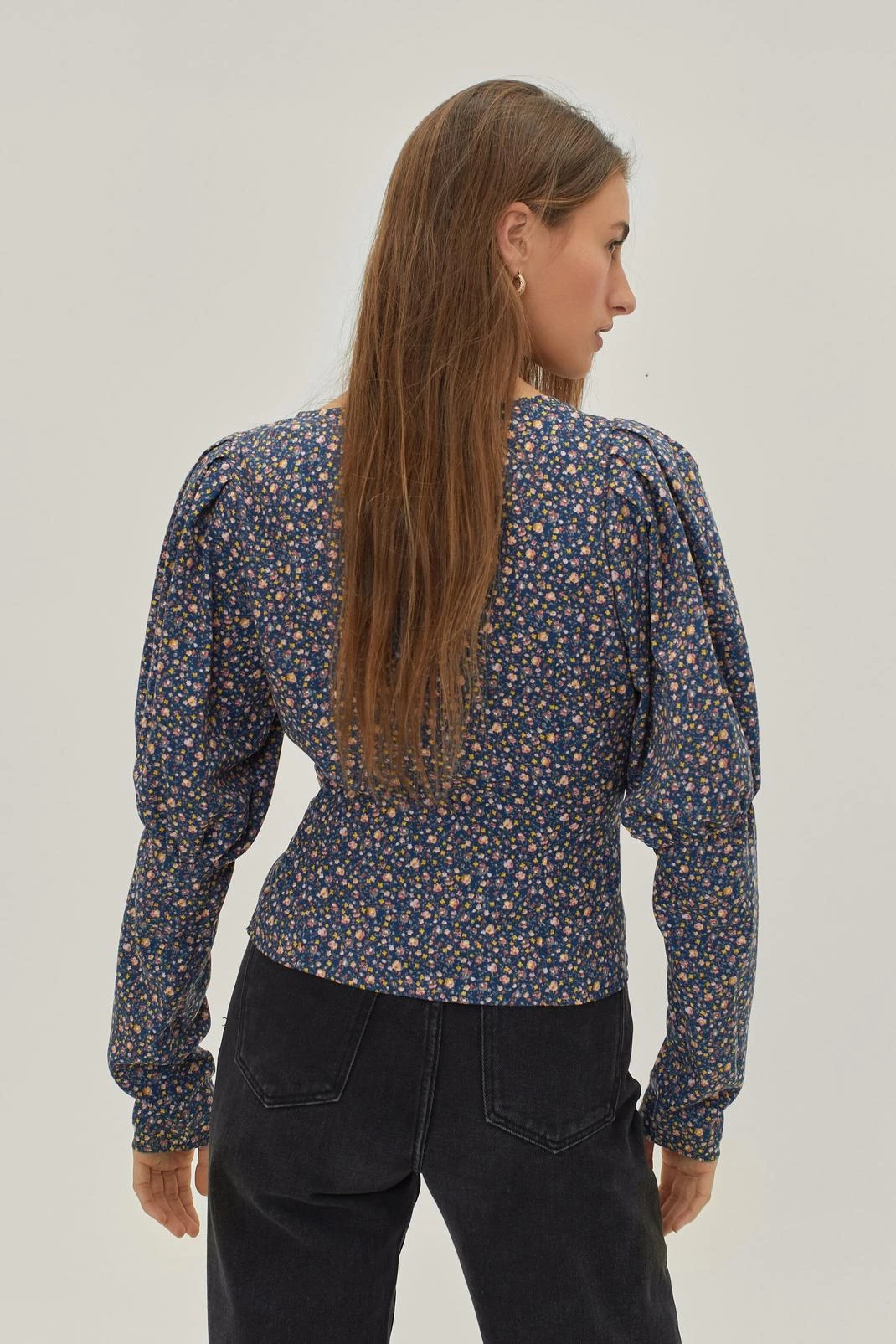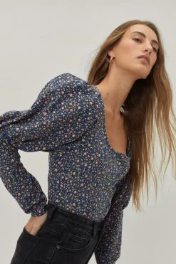 Bring flowers. Feel feminine in our floral blouse. With button down detailing, cute puffed sleeves which create a stellar silhouette, button detailing, and a dramatic squared neckline. Pairs well with jeans and brunch dates that turn to happy hours.