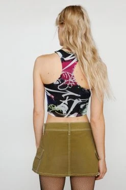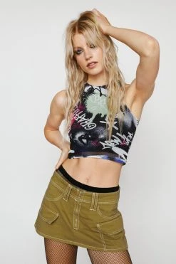 On the walls. Style with a low rise mini skirt, and fishnet tights.