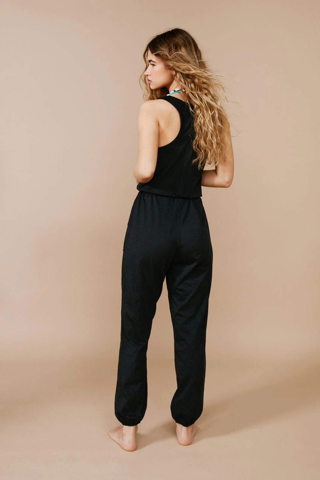 Keep it casual. Feel ready for the day in our jersey jumpsuit, made in high quality jersey fabric, with an ultra comfortable relaxed fit, a scoop neckline, and a tie waist for a cinched silhouette. Pairs well with sandals or sneakers for an alternative day out look that will have you feeling relaxed while looking effortless, perfect for casual days out, coffee catch ups, airport outfits, and lazy days.
