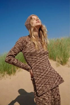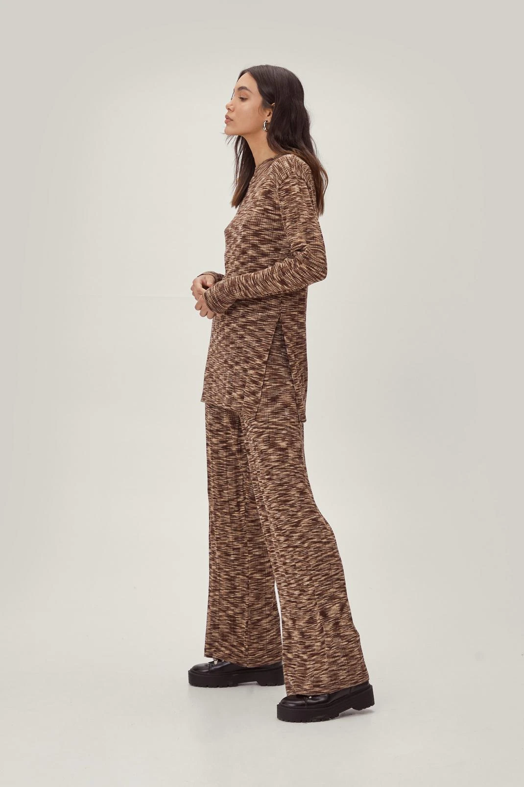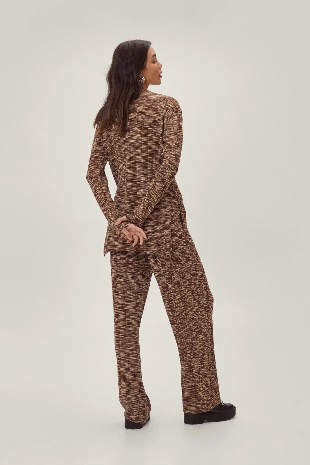 Kitted out in knit. This top and pants set comes in soft knit. The top features a figure-skimming, longline silhouette, high turtleneck, long sleeves, double split hemline, and abstract stripe print throughout. The matching pants feature an elasticated high waist, relaxed wide leg silhouette, pull-on style, and abstract stripe print throughout. Double up on pleasure and wear your set together.