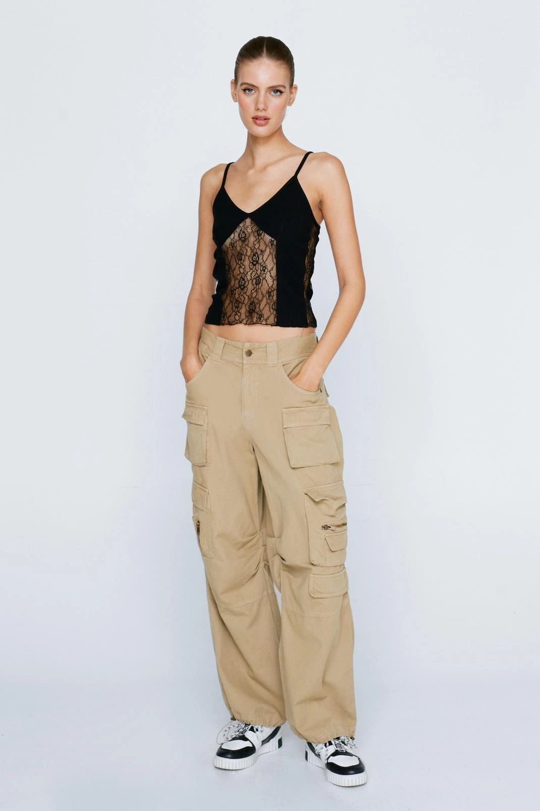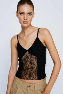 Stepped up staples. Feel fierce in our strappy tank top, with a flirty lace feature which is guaranteed to turn heads, and a flattering V neckline. Pairs well with leather pants or cargos for a look that will take you from date nights, to gig nights and festivals, to happy hours.