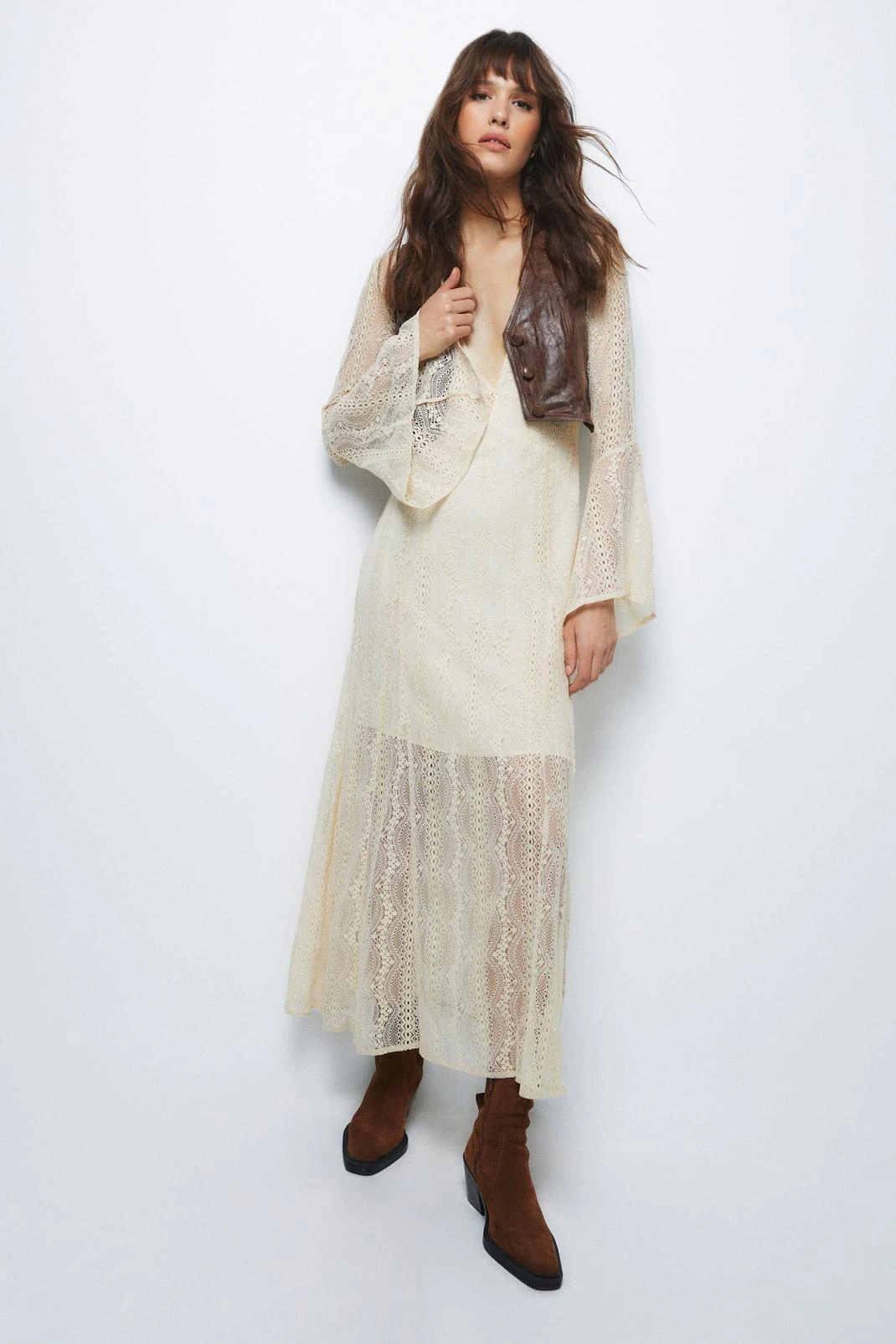 Lace layers. Our intricate lace plunge maxi dress looks great with boots or sandals, and carries you seamlessly from sunrise to sundown.