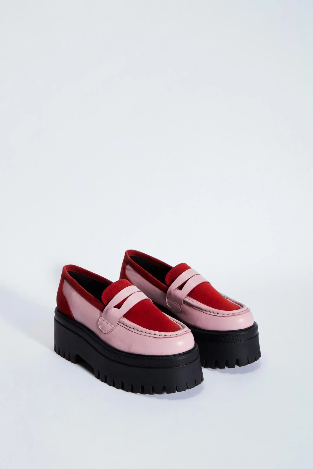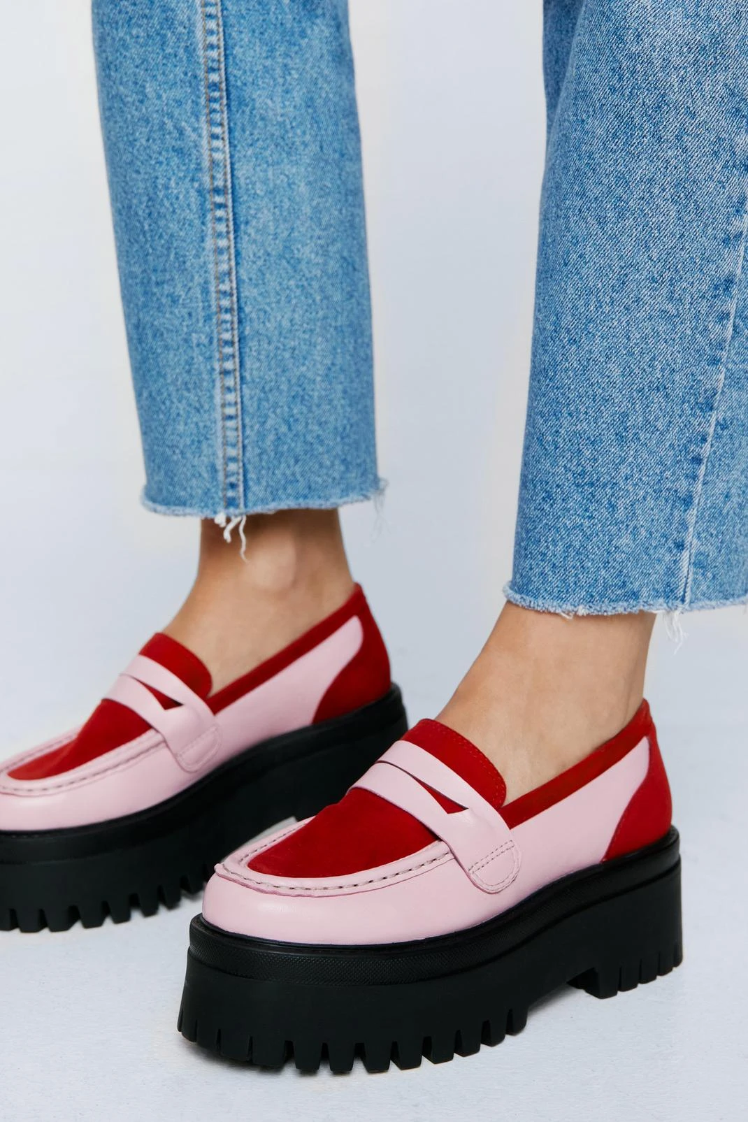 Stomping ground. Feel ready to seize the day in our platform loafers, made in high quality real leather and suede, with ultra chunky soles and an easy slip-on design. Pair them with jeans for an elevated daytime look perfect for the office or casual days out.