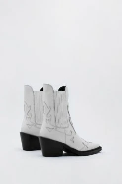 Howdy. These boots feature a cowboy-inspired design, pointed toes, and stitching details. Style with denim mini skirts and corset-style tops for your next night out.