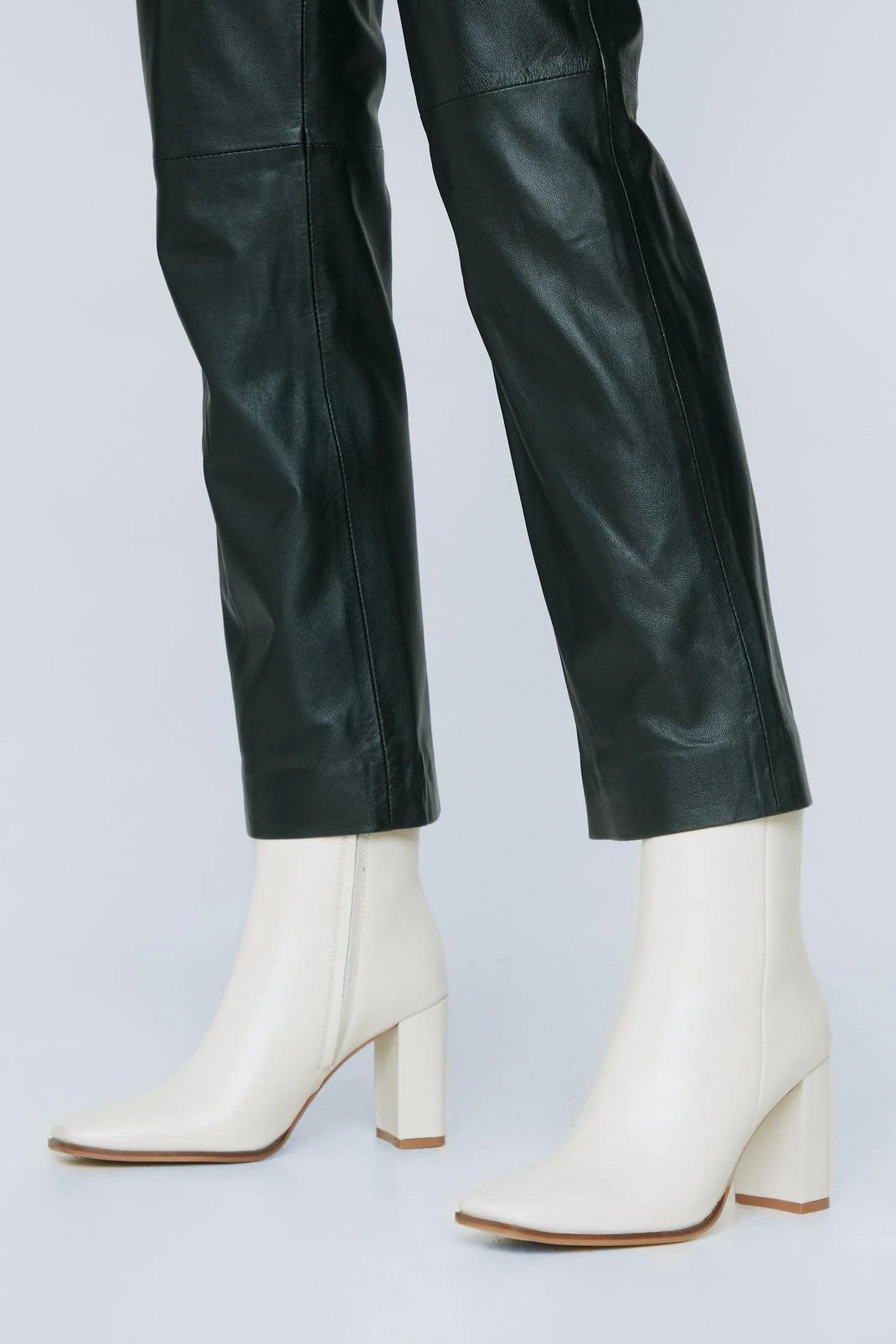 Bet your boots. These boots feature square toes, slim block heels, and side zip closures. Style with leather pants and a fluffy knit cardigan.