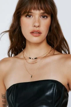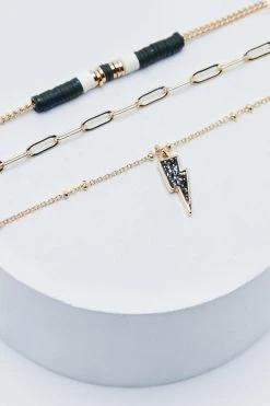 Layer up. Our layered necklace with lightning bolt charm and beading is perfect for adding effortless detail to any look.