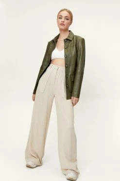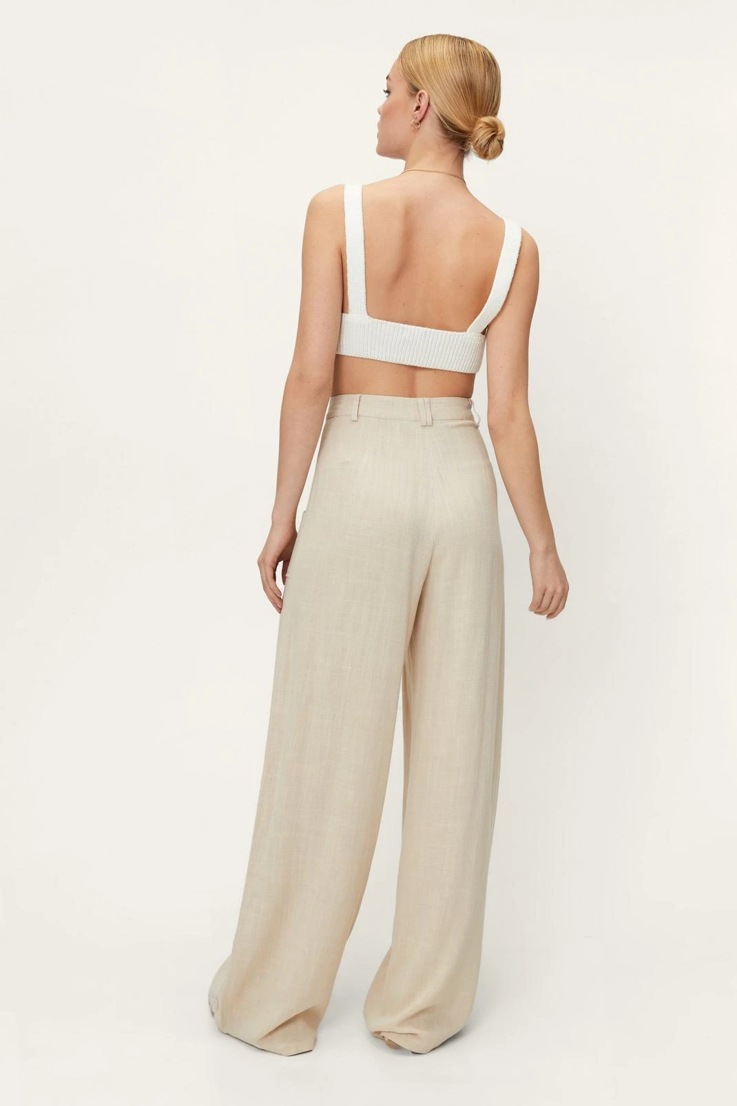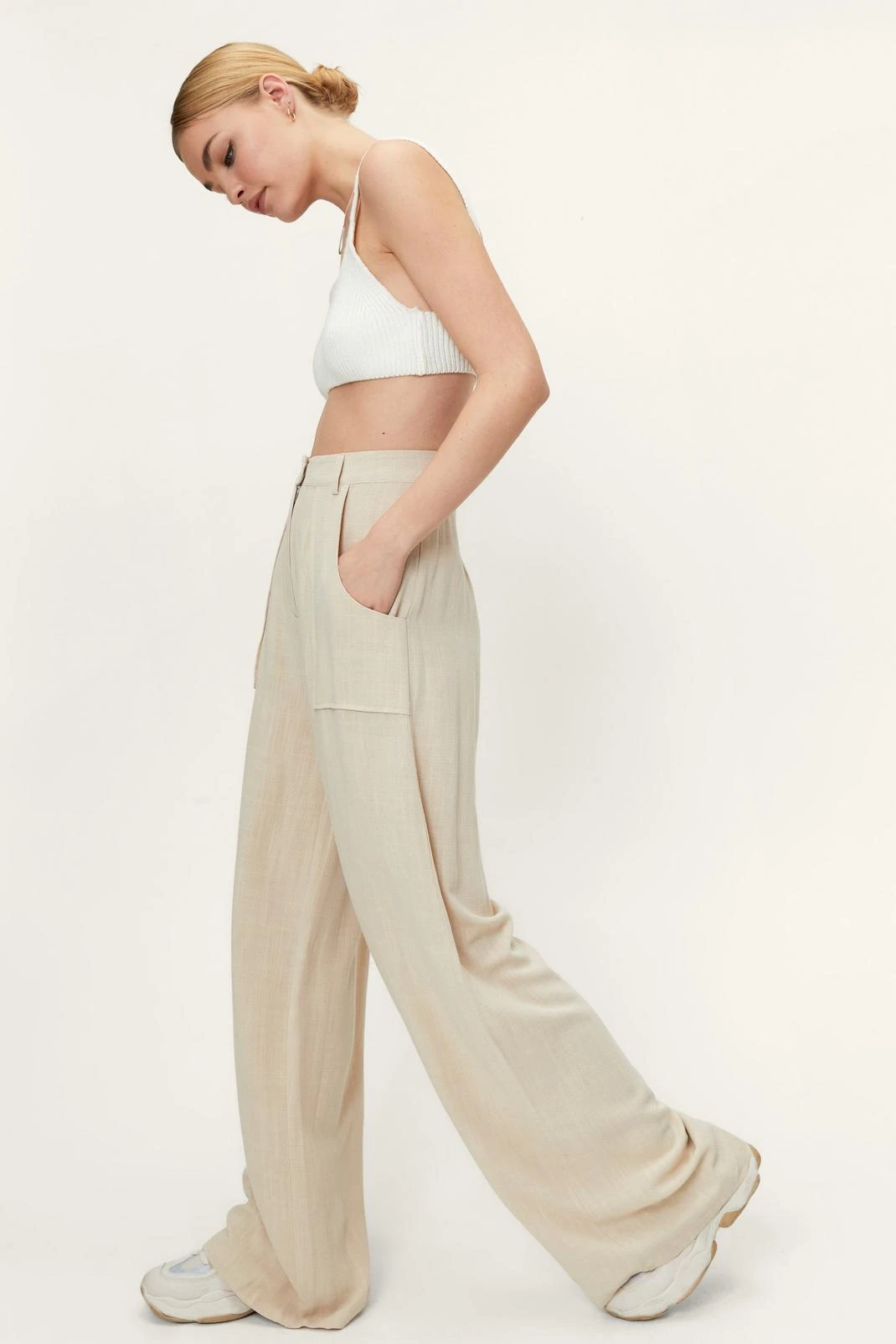 - Linen Look Pocket Detail Wide Leg Pants