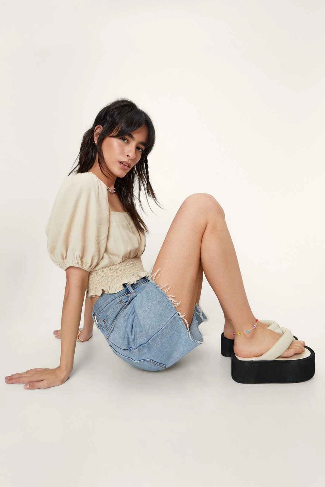 Romance ready. Style this delicate top with the fluid shorts and chunky Chelsea boots.