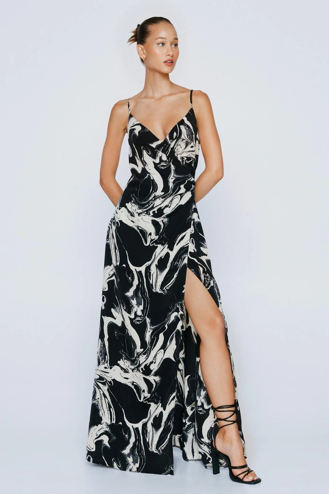- Marble Print Maxi Wrap Dress