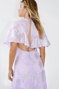 - Metallic Angel Sleeve Open Back Maxi Dress