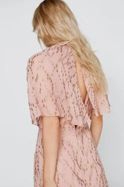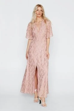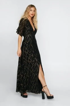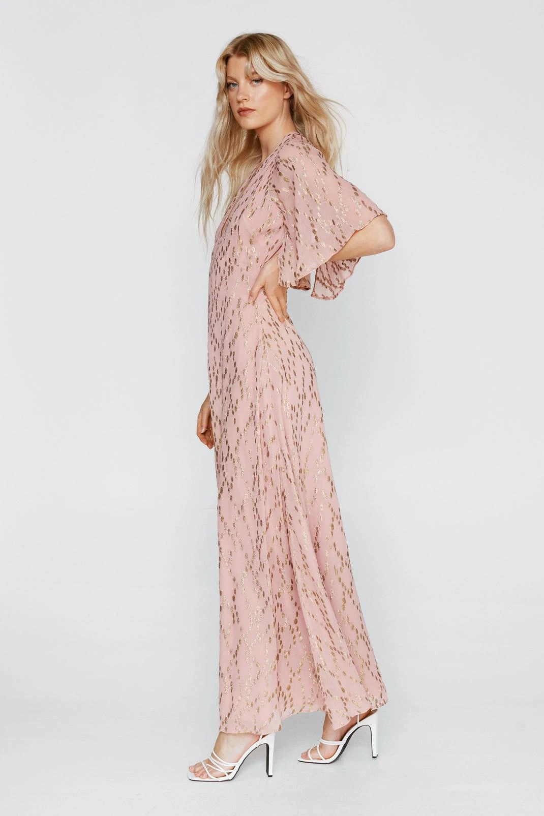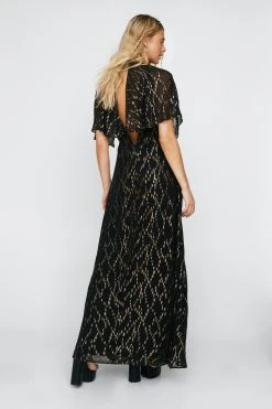 - Metallic Spot Angel Sleeve Maxi Dress