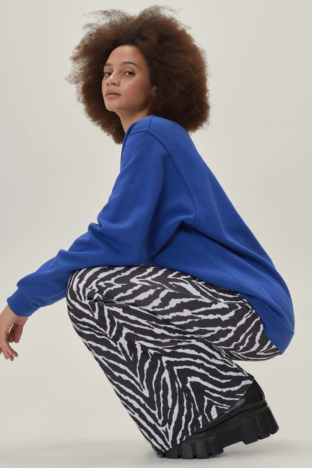Never change your stripes. These pants comes in a durable, woven fabric and feature a high waisted fit, a flattering, fitted, flared silhouette, and a bold, monochrome, zebra print design throughout. Style with biker boots and an oversized graphic t-shirt.