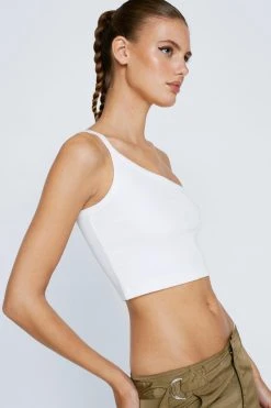 The essentials. Feel edgy in our one shoulder strappy ribbed cami top, with a contemporary cropped length and simple design. Style with any bottoms in your closet for an instantly elevated everyday look.