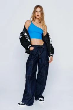 The essentials. Feel edgy in our one shoulder strappy ribbed cami top, with a contemporary cropped length and simple design. Style with any bottoms in your closet for an instantly elevated everyday look.