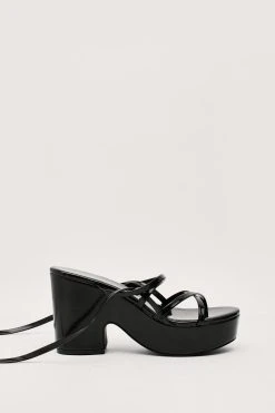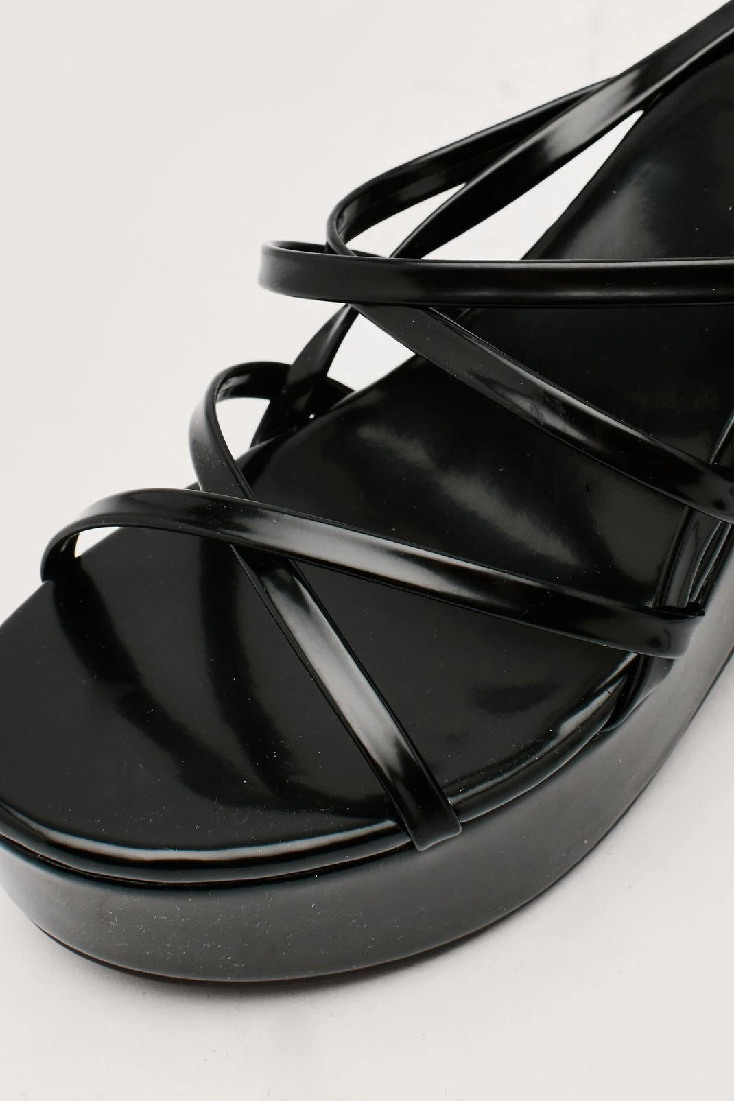 - Style: Patent Faux Leather Strappy Platform Heels
