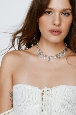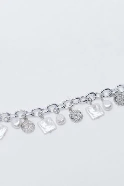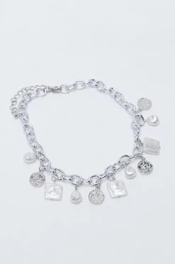Charmed, we’re sure. Feel glamorous when you add our charm necklace to your look. With a chunky chain, pearl details, coin style charms, all in a cool toned silver colorway, this necklace can be worn anywhere from trips to the mall to dinner dates to drinks.