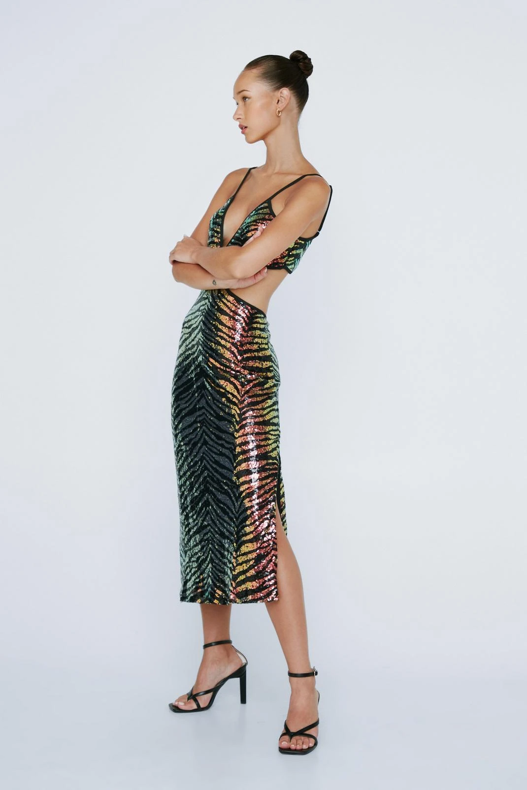 Petite Animal Print Sequin Cut Out Midi Dress