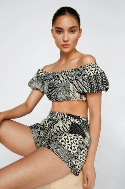 Double trouble. Complete the look by styling with matching crop top, and flat thong sandals.