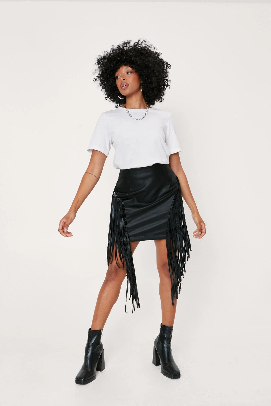 - Style: Petite Faux Leather Fringe Detail Mini Skirt