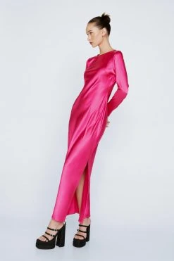 Meet me in the middle. Be ready for any occasion with this dress in your closet, with its high quality satin fabric and open back design. Style with chunky heels for a look that you’ll come back to for all upcoming occasions.