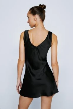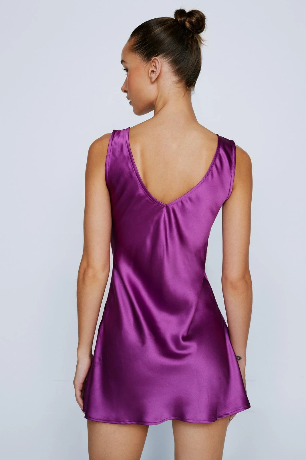Wear the dress. Feel femme in our mini dress, made in high quality satin fabric, with a stellar fit and flare silhouette and a dramatic V neckline. Pairs well with strappy heels for an elevated look that will take you anywhere from parties and happy hours to date nights and occasions.