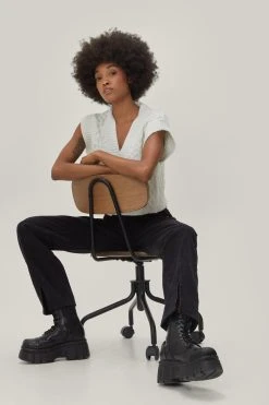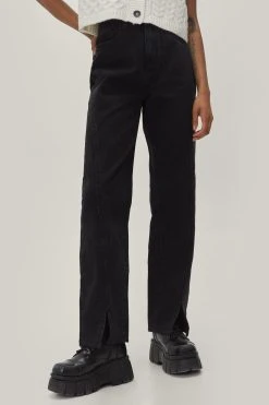 Tell it to them straight. These petite jeans come in an black wash denim and feature a straight leg silhouette, split at front, seam detailing, zip fly closure, 5 pocket design, belt loops, and acid wash finish. Meet your new favorite jeans, style yours with a basic t-shirt and chunky biker boots.