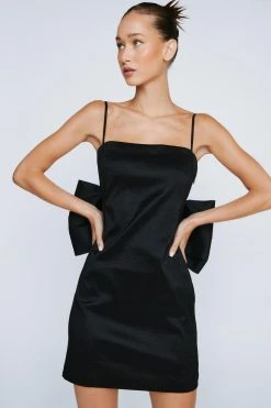 Tied with a bow. Taffeta mini dress, a fun and flirty dress for parties and evening drinks.