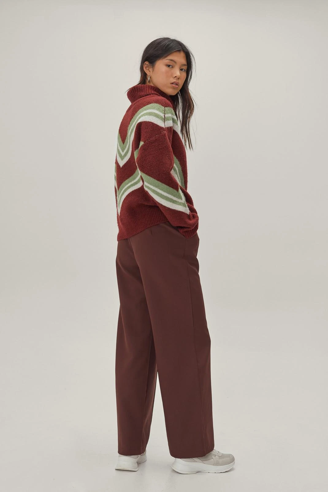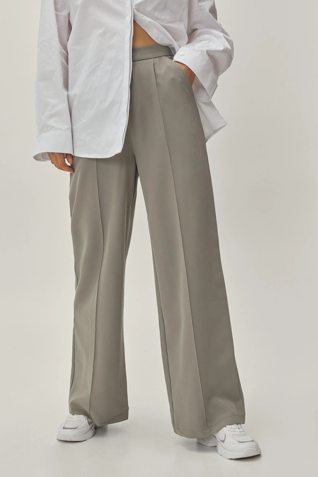 Power pants. These pants come in a soft woven fabric, making them both breathable and flexible. They feature a high waistband with snap closure, concealed zip-down fly closure, tailored silhouette, deep pockets at sides, and pintuck seam detailing throughout wide leg. For casual coffe runs wear yours with oversized silhouettes and chunky sneakers.