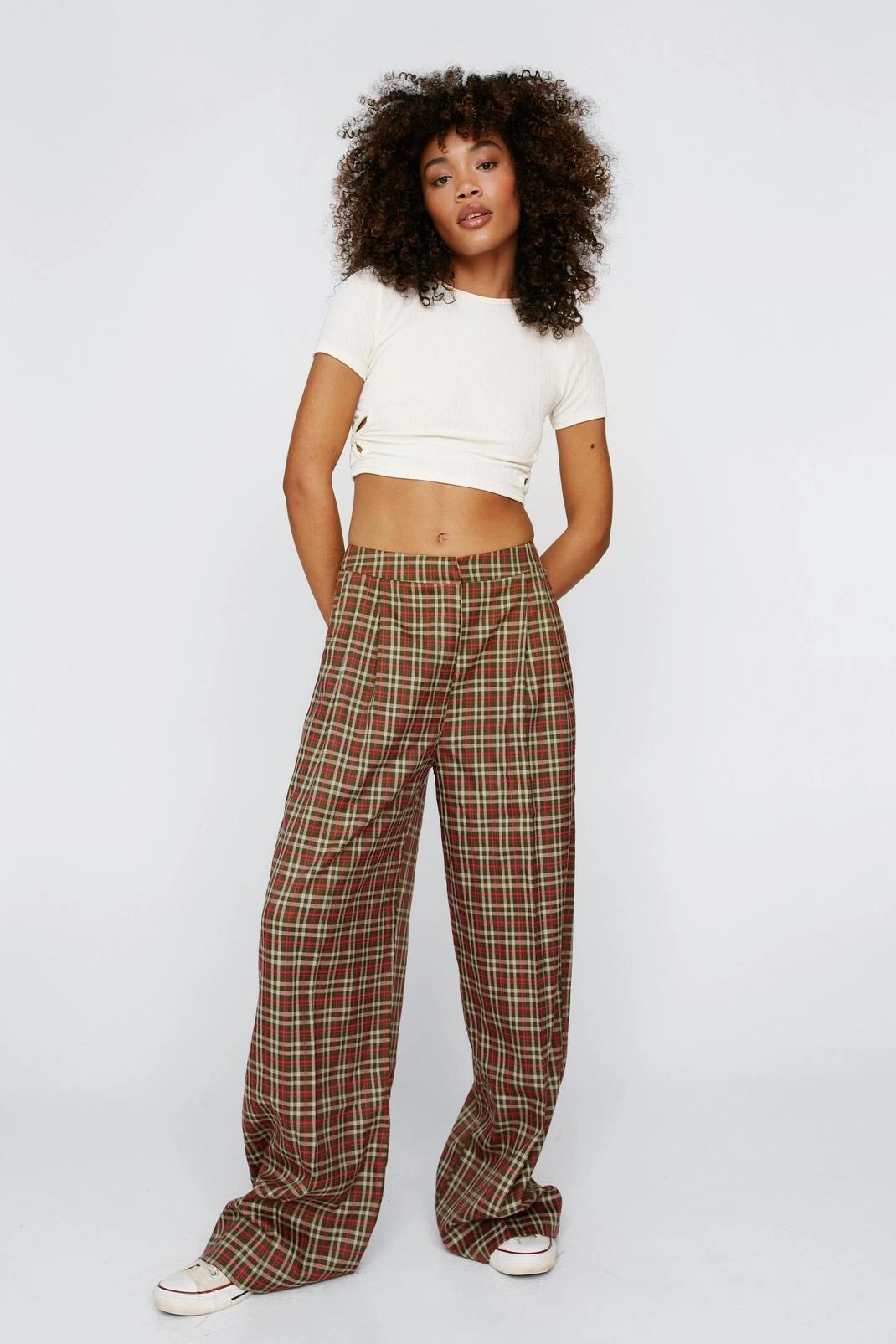 The pants edit. Feel fancy in our wide leg pants, with a classic plaid pattern, an ultra flattering wide leg fit, and a comfortable high waistline. Our plaid pants pair well with a crop top, sweater, or bodysuit for an elevated look that will take you seamlessly from day to night, perfect for wearing to dinner dates, cocktail bar catch ups, and shopping days.