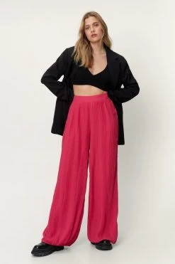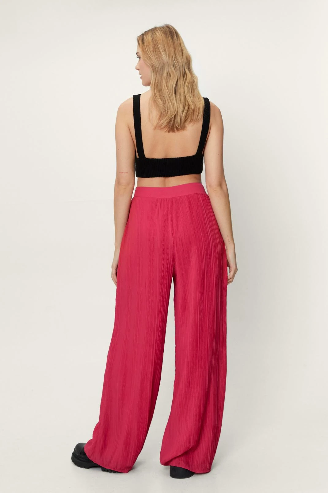 The pants edit. Feel ready for the day in our wide leg pants, with a flattering high waistline, and an ultra comfortable wide leg fit, in intricately pleated fabric. Pairs well with crop tops and chunky boots for a cute daytime look, and can be easily elevated with a blazer for a look that will take you from the office to happy hour.