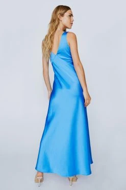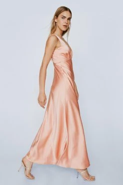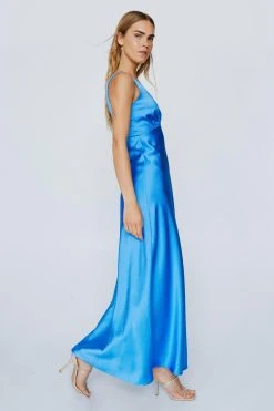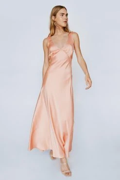 - Plunge Neck Crinkle Satin Maxi Dress