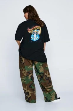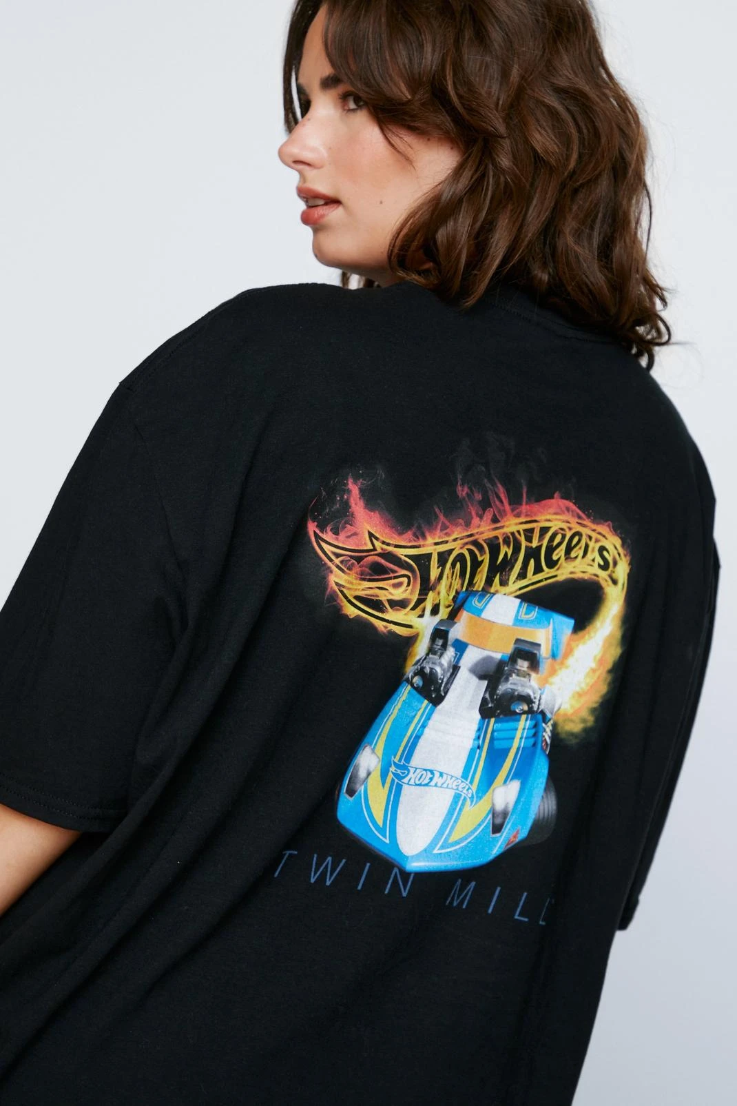 Pick up speed. Our plus size graphic t shirt boasts a Hot Wheels graphic on the back, and a super comfy oversized fit.