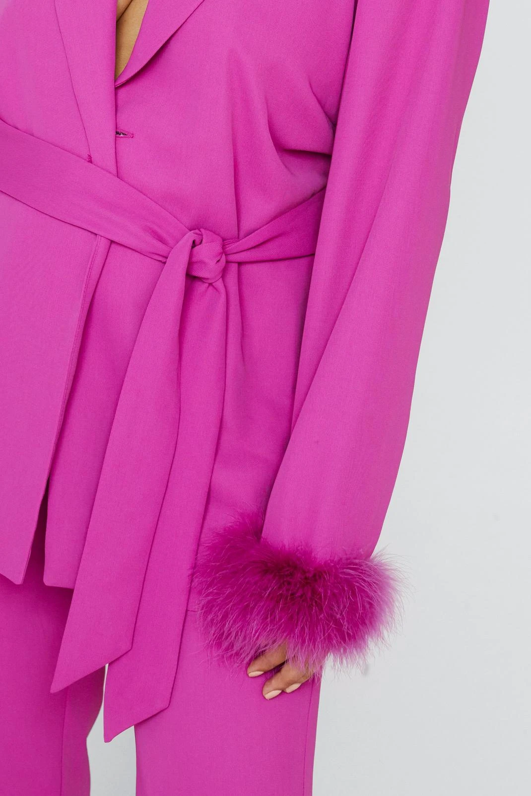 Fabric: 100% Polyester. Ostrich fur trim. Hand wash only.