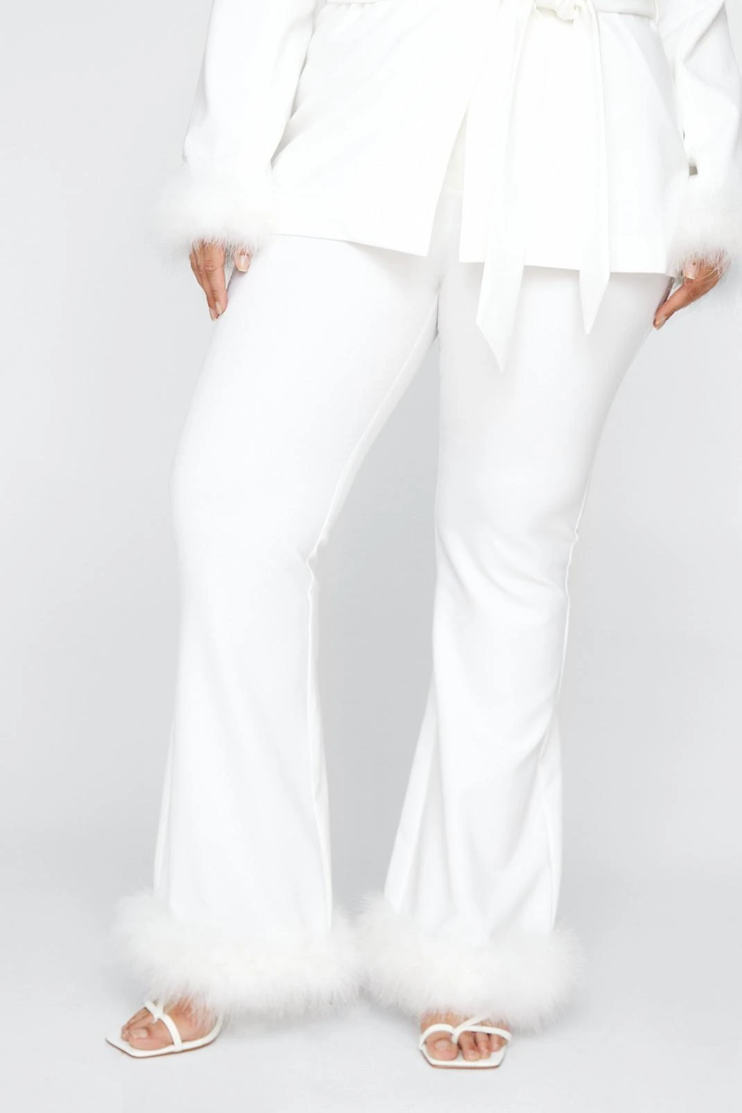 Fabric: 100% Polyester. Ostrich fur trim. Hand wash only.
