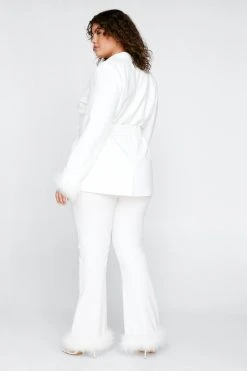 Ruffle a few feathers. Style with matching blazer, and square toe heels.