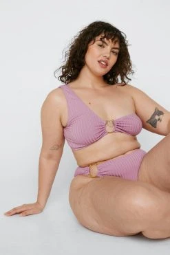 - Plus Size Recycled Ribbed One Shoulder Bikini Top