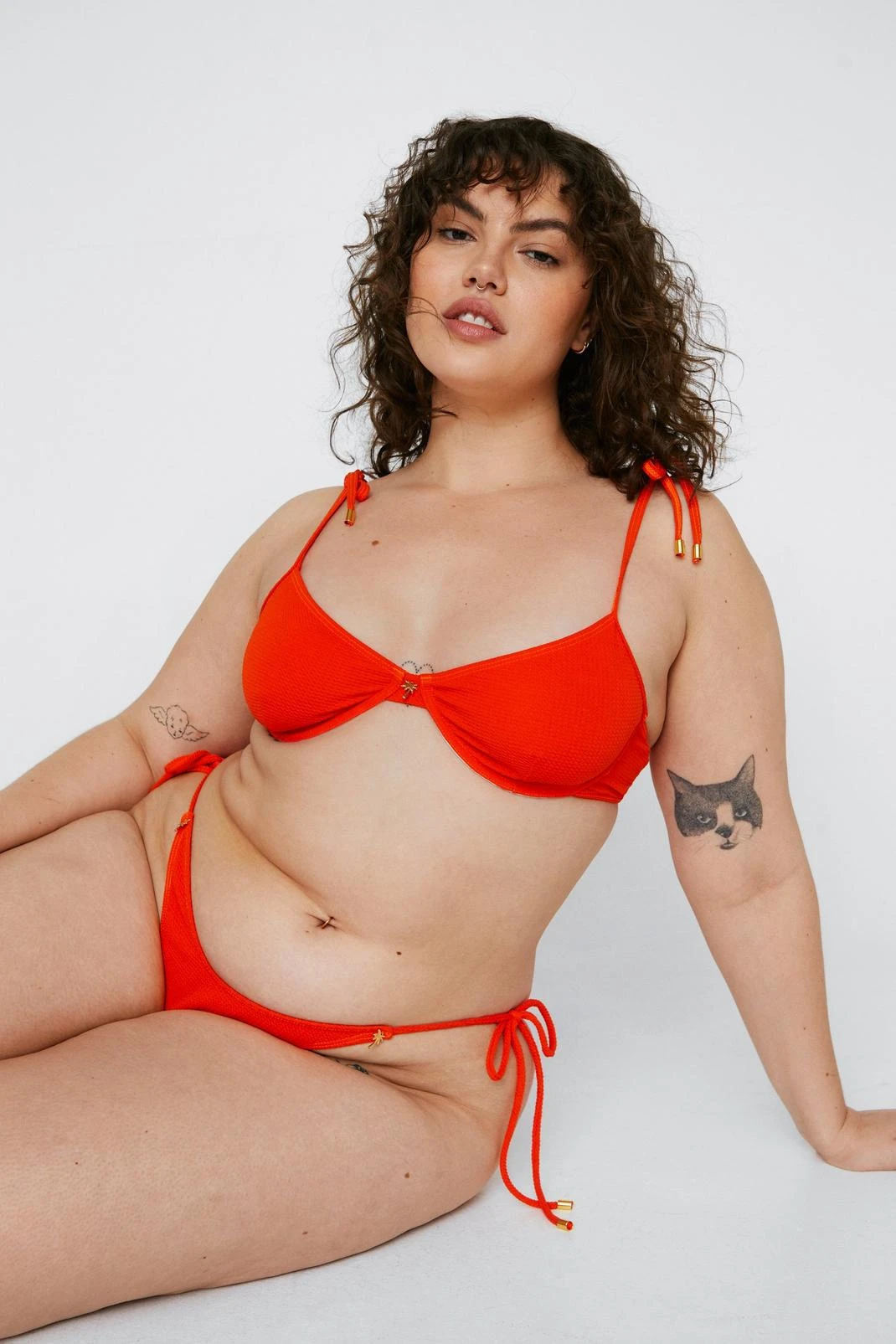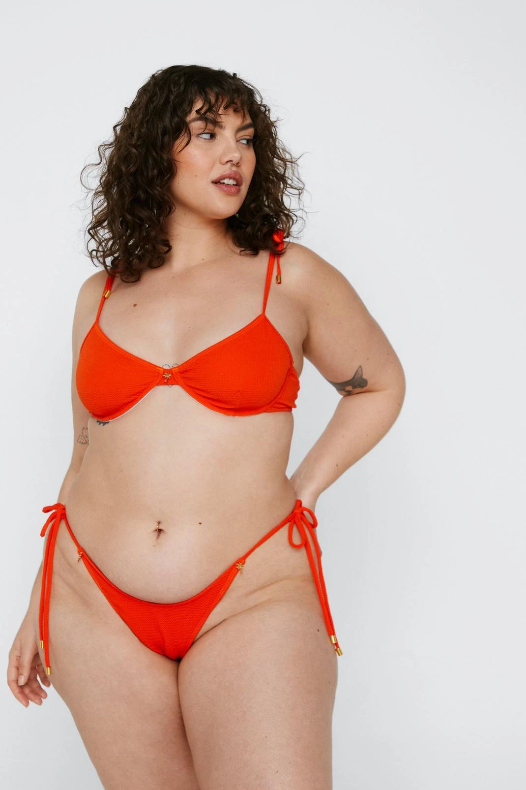 Just add water. Our plus size textured bikini pants are a summery swimwear option that look great with your fave vacation accessories.