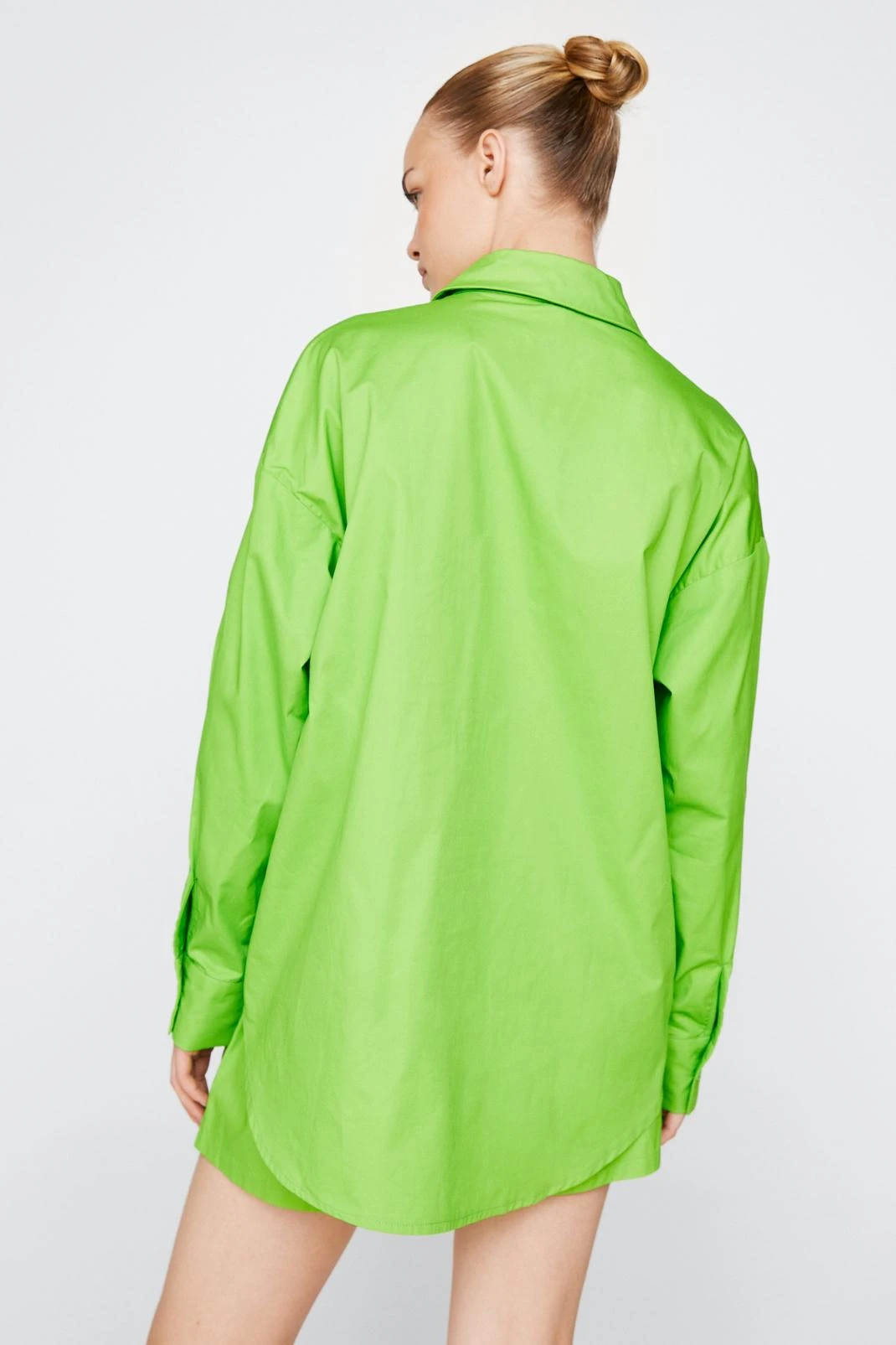 Here comes the sun. This shirt comes in poplin – a fine, but thick fabric. This allows it to be breathable and perfect for when hot conditions strike. It features an oversized, relaxed silhouette, pointed collared neckline, button down closures throughout front, large pocket at bust, and long sleeves. Style yours by tucking into the coordinating shirt and wearing leather look ankle boots.