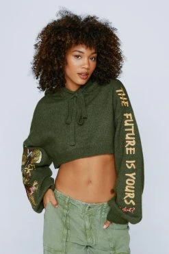 What a stitch. Our embroidered hooded sweater looks great when styled with your favorite pants and sneakers.
