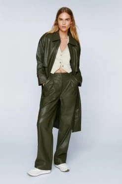Down here. Feel confident in our straight leg pants, with a high quality faux leather fabric, ultra flattering design, and comfortable high waistline. Perfect for dancefloors and drink dates.