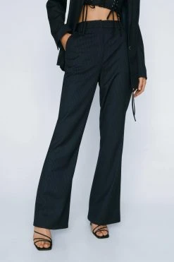 Stripe out. Feel formal in our premium pinstripe pants, with unique lace up detailing. Style with the coordinating blazer and bustier top for a matching look that will turn heads.