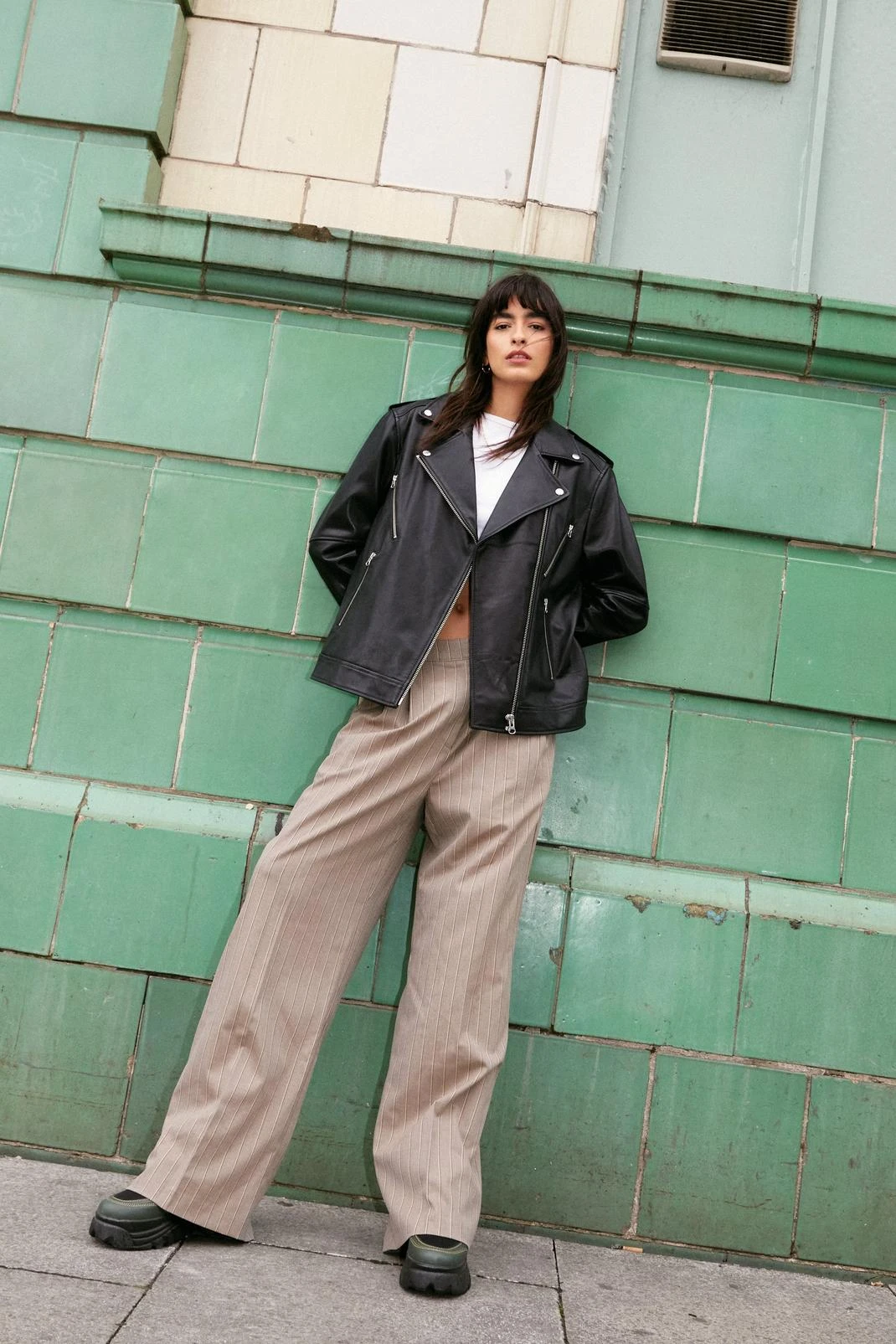 Fancy pants. Feel formal in our wide leg pants, with a classic and subtle pinstripe pattern, an ultra flattering wide leg fit, and a comfortable mid to low rise waistline. Our stripe pants pair well with a crop top, sweater, or bodysuit for an elevated look that will take you seamlessly from day to night, perfect for wearing to dinner dates, cocktail bar catch ups, and shopping days.