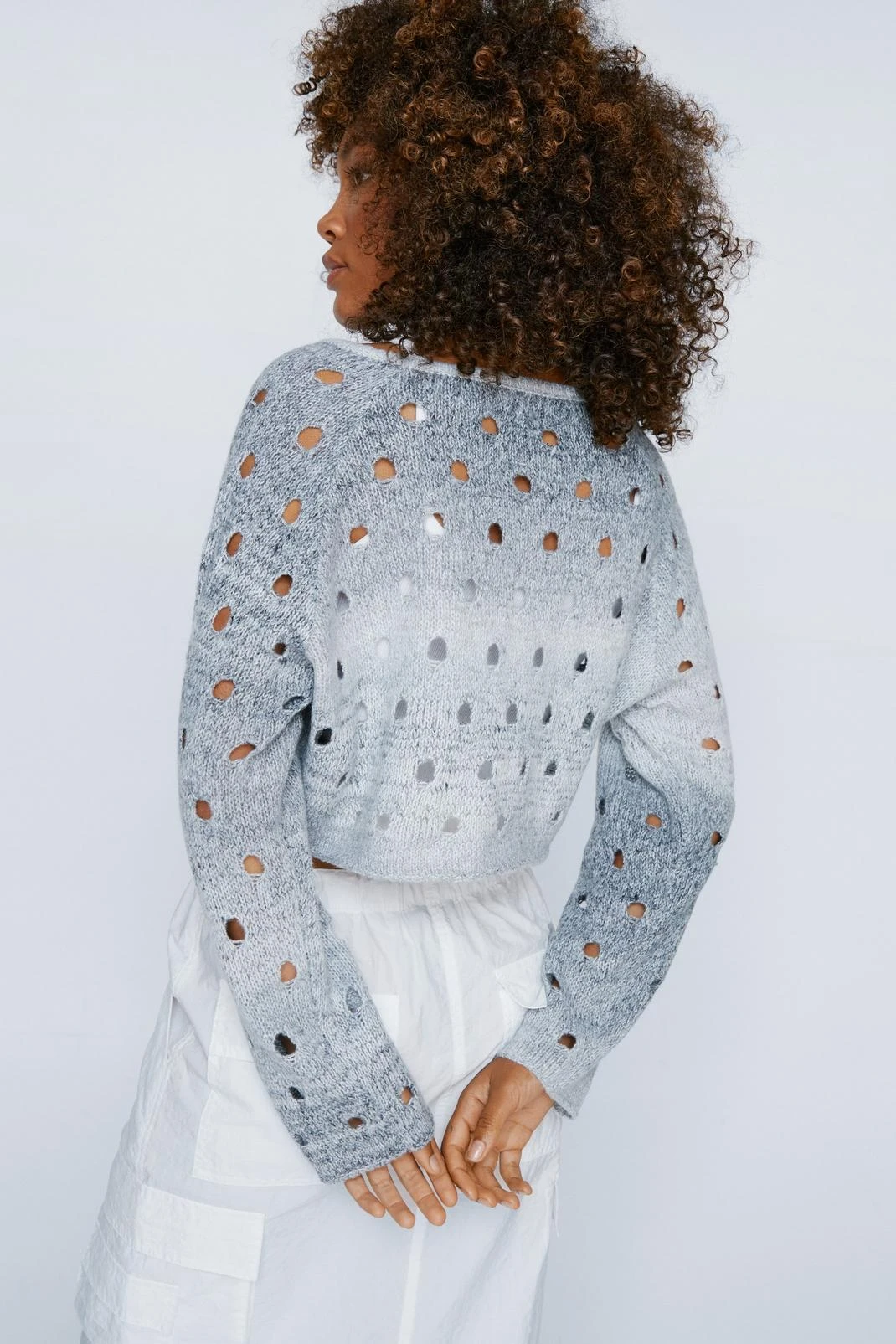 Sweater weather. Feel cozy in our knit sweater, made in high quality knit fabric, with a fun tie dye print, fun cut out detailing, and a playful cropped length. Pair the sweater with cargo pants or leather pants for an elevated look that will take you seamlessly from day to night, whether you’re going for drinks after the office, or heading out for the day to catch up with the girls.