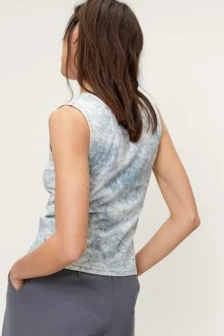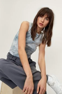 Meet the closet basics. This tank top features a crew neckline, sleeveless, relaxed silhouette, and marble print throughout. Style yours with high waisted, tailored pants.