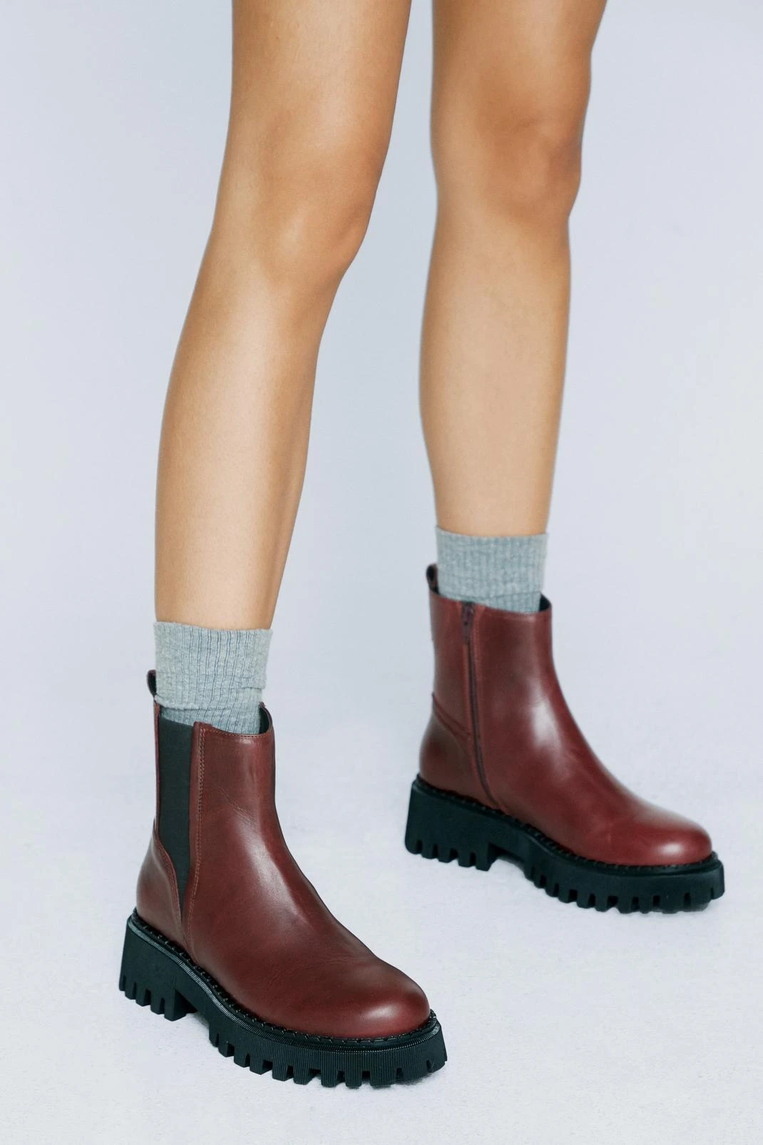 Leather weather. Feel elevated in our leather Chelsea boots, made in high quality real leather, with an ultra comfortable chunky platform sole. Our real leather chunky chelsea boots look great no matter the season, and can be worn anywhere from the office to long days out to coffee catch ups to festivals and gig nights.