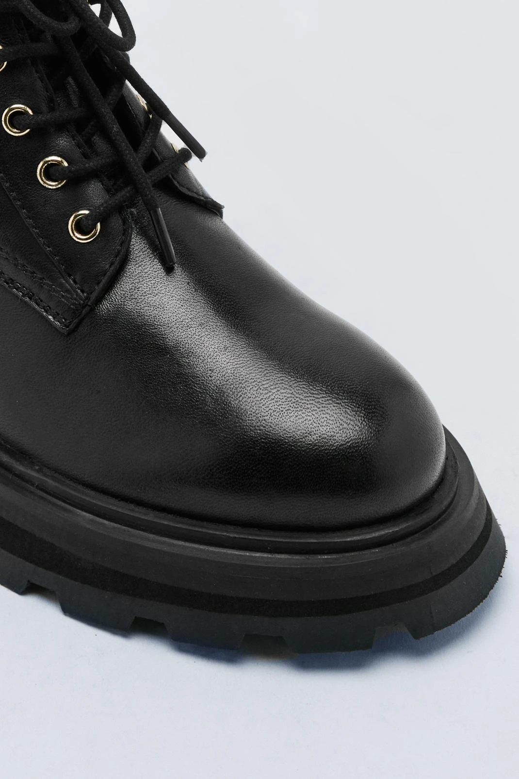 Stomping ground. Feel stepped up in our biker boots, made in high quality real leather, featuring comfortable chunky soles and buckle detailing. Pairs well with jeans and skirts for footwear that will take you from casual days out to festivals and gig nights to hillside hikes.