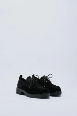 Fancy footwork. Feel cute in our suede loafers, made in high quality real suede, with chunky heels and a lace-up fastening. Pairs well with maxi skirts, dresses, and jeans for a look that will take seamlessly from day to night, from the office to dinner dates to drinks.