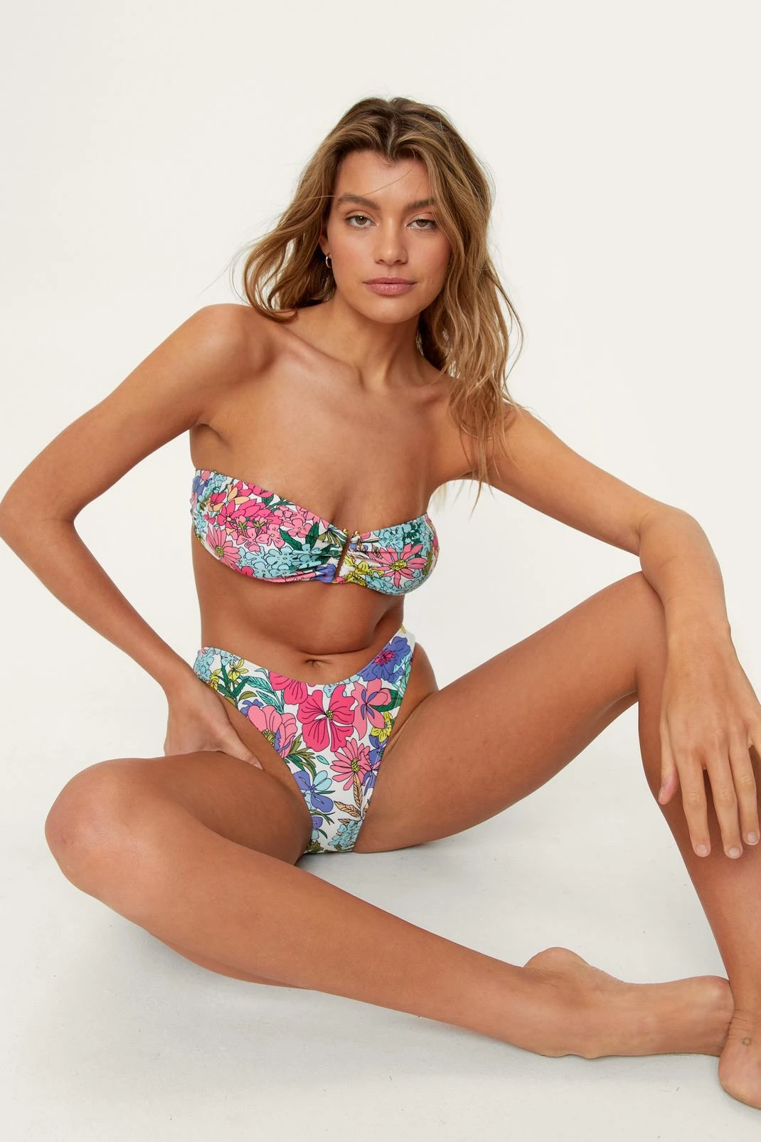 Recycled Bright Floral Print Bandeau Bikini Set