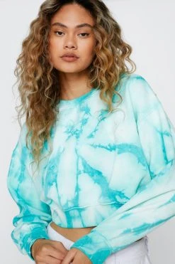 Add a layer. Feel cozy in our cropped sweatshirt, with a fun tie dye pattern and an ultra comfortable relaxed fit. Pairs well with sweatpants or jeans for a look that will take you from morning walks to casual days out.